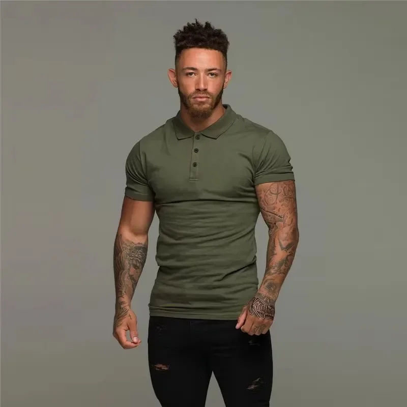 เสื้อโปโลแขนสั้นผู้ชายแฟชั่นฤดูร้อนใหม่ ทรงเข้ารูป คอปก สำหรับออกกำลังกาย ฟิตเนส เพาะกาย