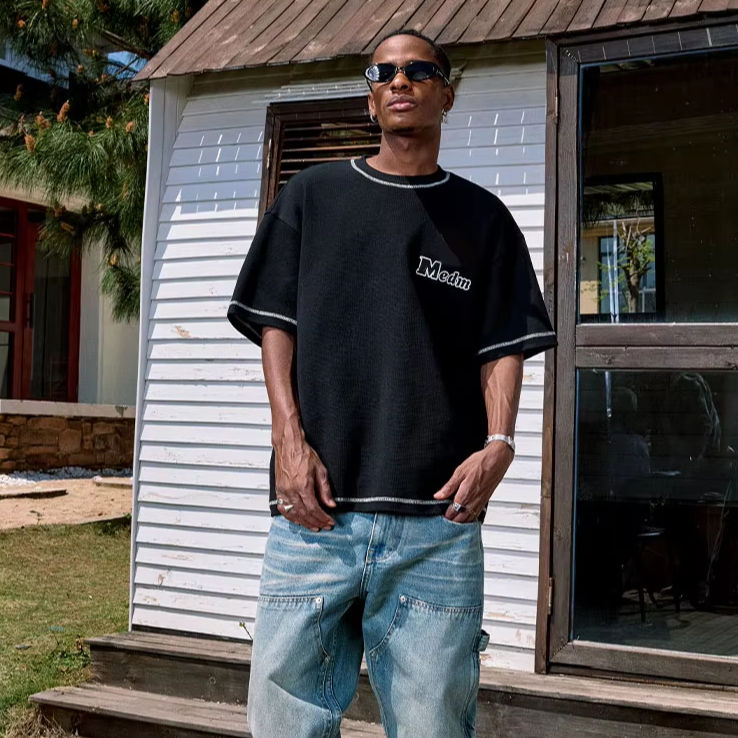 เสื้อยืดแขนสั้นวินเทจพิมพ์ลายดิจิทัลทรงหลวมใส่ได้ทั้งชายและหญิงดีไซน์ลำลองใหม่ฤดูร้อนคุณภาพสูง