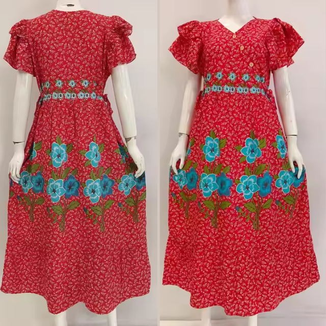 ชุดนอนเดสเตอร์เรยอนยาวถึงเข่าไซส์พิเศษสำหรับผู้หญิงชุดนอนเอวยางยืดติดกระดุมหน้าซ้ายขวาสำหรับฤดูร้อน