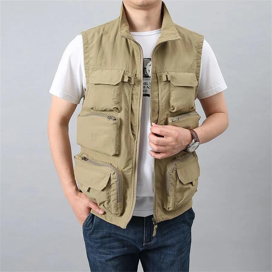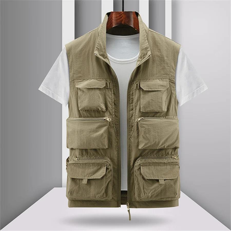 เสื้อกั๊กผ้าตาข่ายแห้งเร็วสำหรับผู้ชายใส่กลางแจ้งใหม่ฤดูร้อนเสื้อแจ็กเก็ตแขนกุดสำหรับปีนเขาเสื้อกั๊กสำหรับผู้ชาย5มิติมีกระเป๋า
