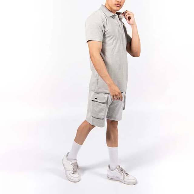 ชุดกีฬาฤดูร้อนใหม่สำหรับผู้ชาย เสื้อโปโลแขนสั้นและกางเกงขาสั้น ชุดสองชิ้น ชุดคู่ ยูนิเซ็กซ์ ผ้าฝ้าย ชุดลำลอง กางเกงขาสั้นถัก