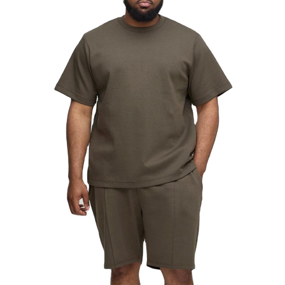 ชุดเซ็ตเสื้อผ้าผู้ชายลำลองสำหรับฤดูร้อน 2 ชิ้น กางเกงขาสั้น ผ้าฝ้าย 100% สีพื้น รับสกรีนโลโก้