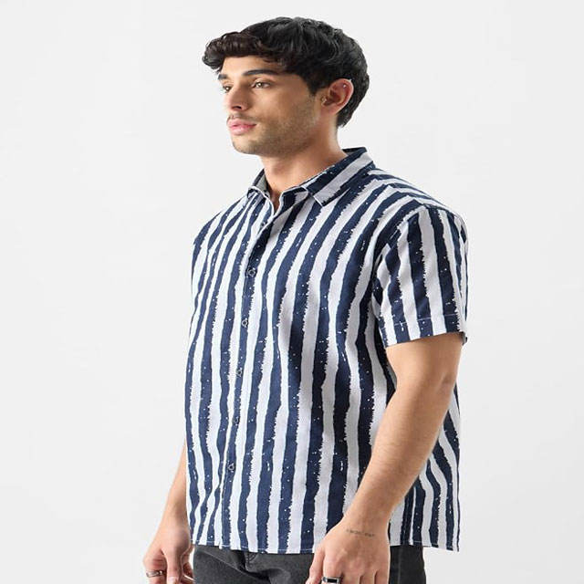 เสื้อเชิ้ตฮาวายแขนสั้นสำหรับผู้ชาย, เสื้อชายหาดพิมพ์ลายดิจิตอลเรขาคณิตลำลองใหม่ฤดูร้อน