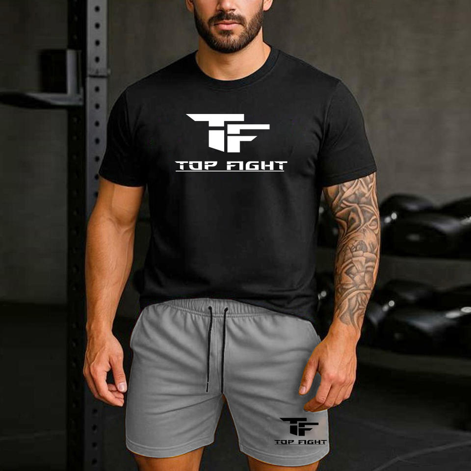 เซ็ตเสื้อยืดแขนสั้นสำหรับผู้ชายชุดกางเกงขาสั้นเสื้อยืดแขนสั้นสำหรับออกกำลังกายชุดสองชิ้นสำหรับฤดูร้อน