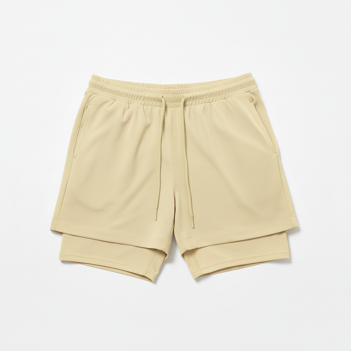 กางเกงขาสั้นออกกำลังกายผู้ชายแบบใหม่สำหรับฤดูร้อน OEM แบบกำหนดเอง 2 in 1 สำหรับวิ่ง ฟิตเนส เทรนนิ่ง แห้งเร็ว กางเกงกีฬาขาสั้นตาข่าย