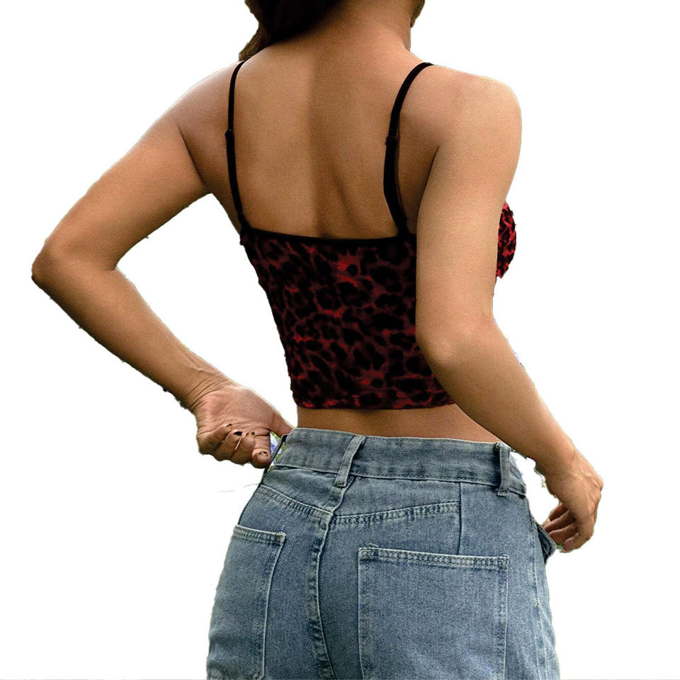 เสื้อครอปสายเดี่ยวลายเสือดาวทรงเข้ารูปสำหรับฤดูร้อนใหม่ เสื้อกล้ามแฟชั่นสตรีท OEM แบรนด์ส่วนตัว เสื้อผู้หญิง