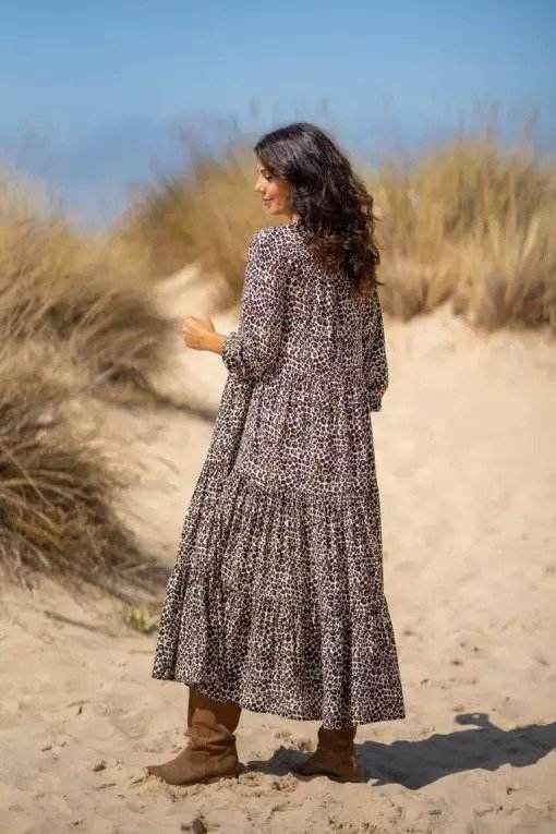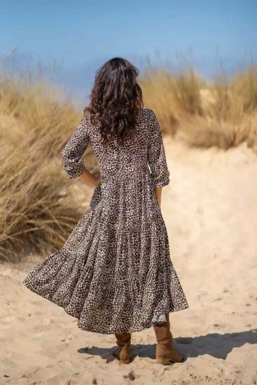 เดรสแม็กซี่ผ้าฝ้ายโบฮีเมียนสำหรับผู้หญิงแขน3/4พิมพ์ลายลำลองและเซ็กซี่สไตล์ยาวถึงพื้นสำหรับวันหยุดฤดูร้อนและฤดูใบไม้ผลิ