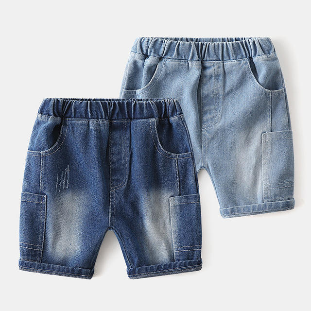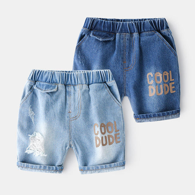 ชื่อ:กางเกงยีนส์ขาสั้นเอวยางยืดพิมพ์ลายสไตล์ฤดูร้อนสำหรับเด็กผู้ชาย