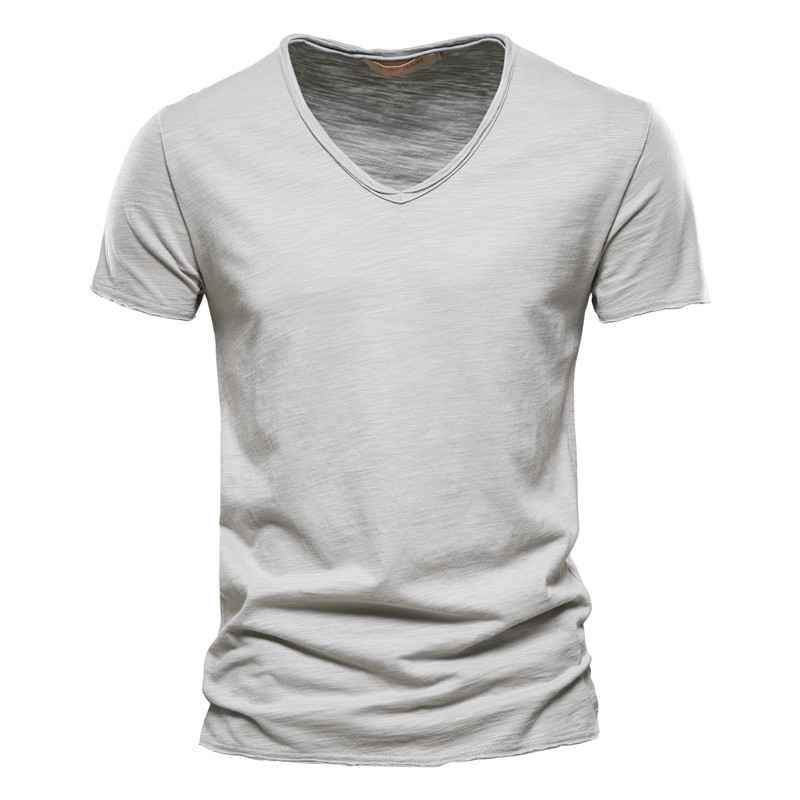 เสื้อยืดแขนสั้นผ้าไอซ์ซิลค์ทรงสลิมฟิตระบายอากาศคอวีสำหรับผู้ชายมาใหม่ฤดูร้อน