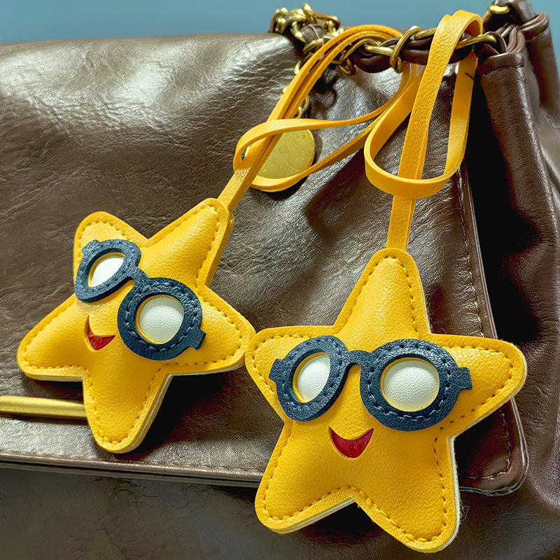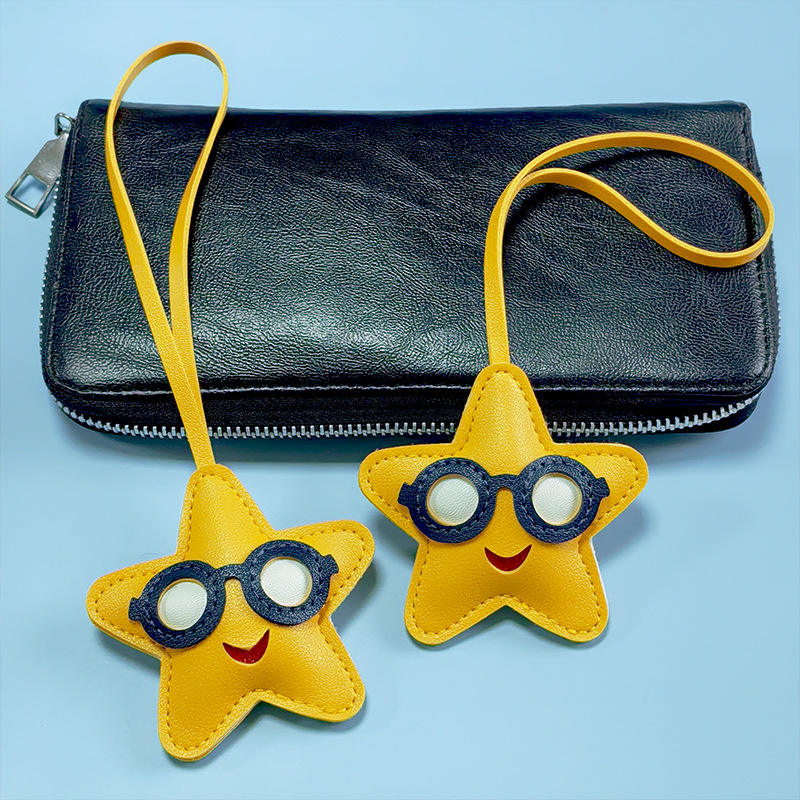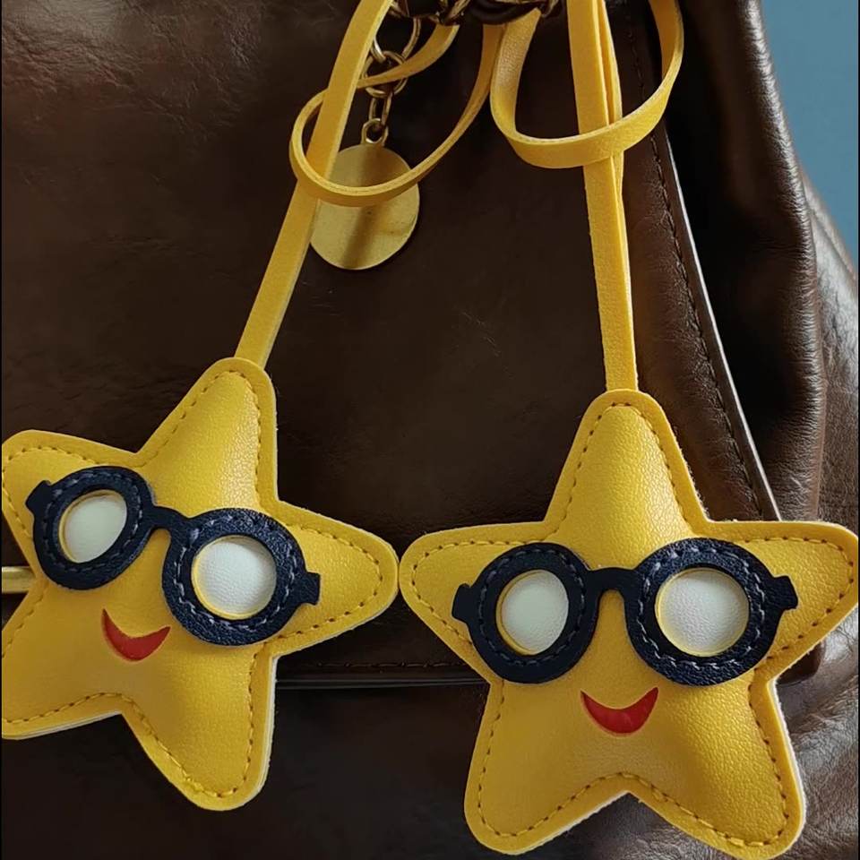 ใหม่จี้หนังการ์ตูนแว่นกันแดดแฟชั่นหนัง PU กระเป๋าห้อยจี้ดาวกระเป๋าเชือกหนังห้อยแขวนชุด Miu