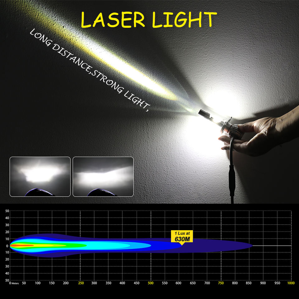 ใหม่ Super สว่างที่สุดหลอดไฟรถยนต์เลเซอร์ 20000lm 6500k 630M H7 หลอดไฟ LED ไฟหน้า