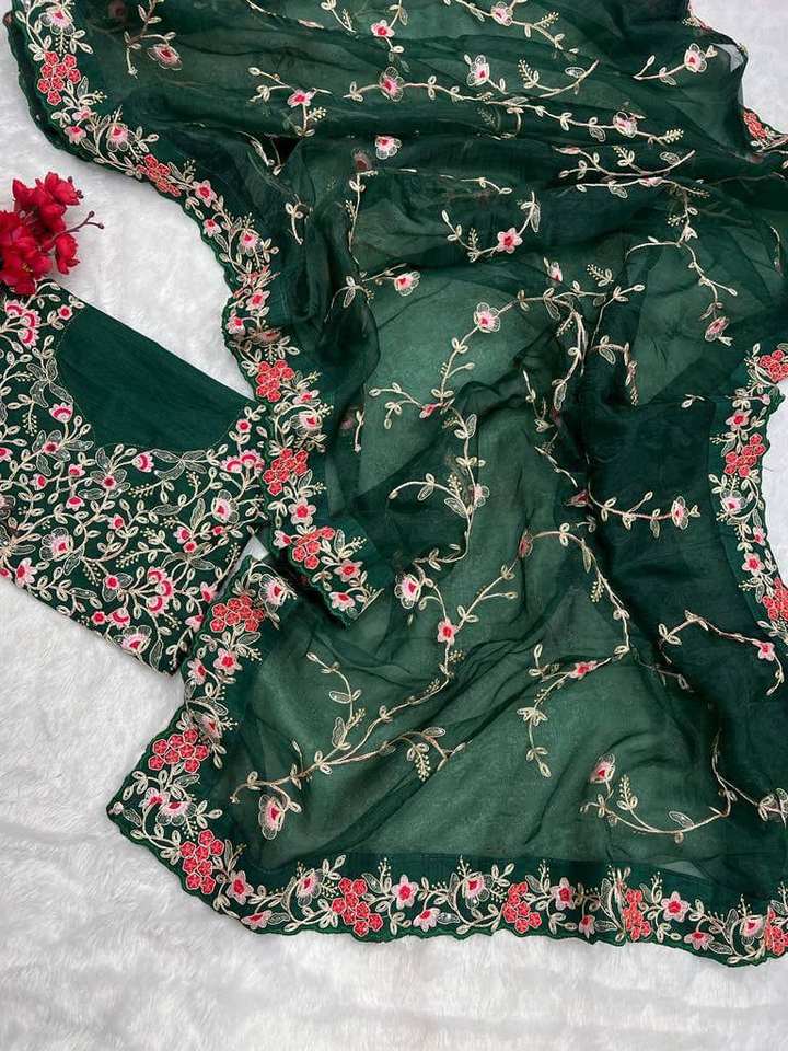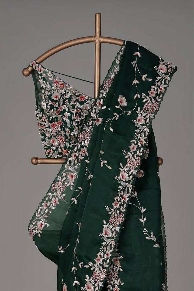 คอลเลกชั่นส่าหรีสำหรับผู้หญิงชุดปาร์ตี้ผ้าออร์แกนซ่างานปักตามลำดับ