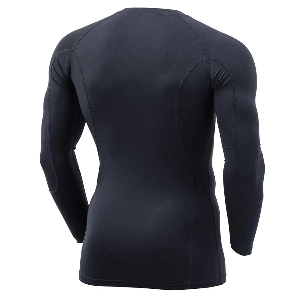 เสื้อแรชการ์ดแขนยาวสำหรับเล่นเซิร์ฟผู้ชาย ป้องกันรังสียูวี UPF 50 ผลิตจากผ้าสแปนเด็กซ์/โพลีเอสเตอร์ แห้งเร็ว ระบายอากาศดี รับผลิตแบบ OEM ODM