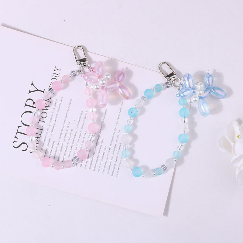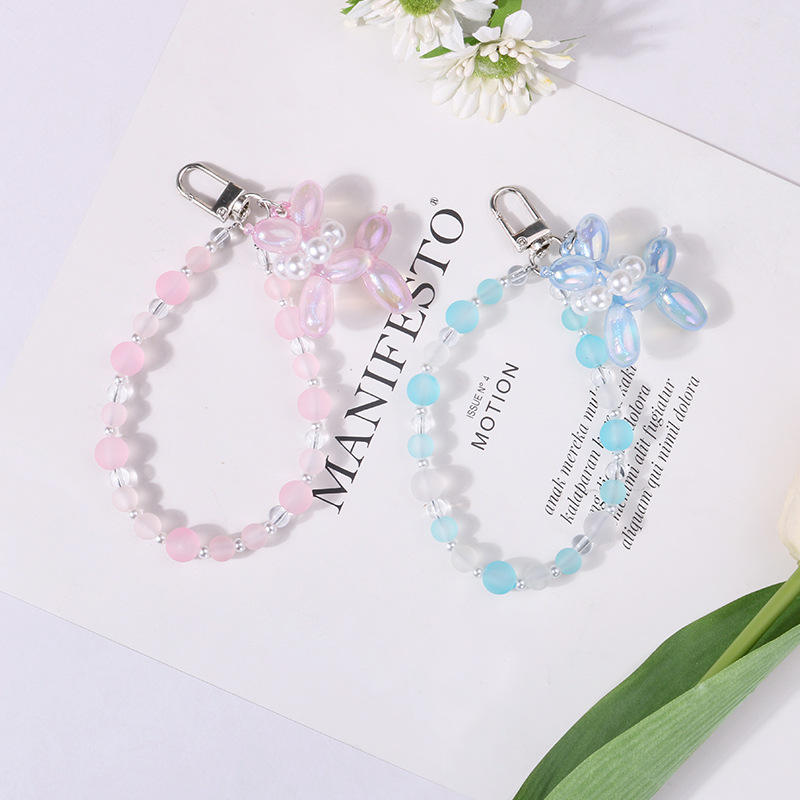 กระเป๋าพวงกุญแจลูกปัดอะคริลิครูปฟองน้ำรูปสุนัขฟองสีลูกกวาดหวานน่ารักใหม่จี้ตกแต่งโทรศัพท์กล้อง