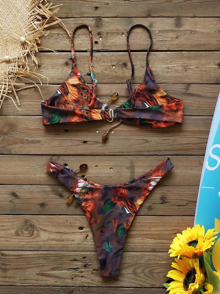 ชุดว่ายน้ำผู้หญิงแบบใหม่ 2 ชิ้น ชุดบิกินี่ลูกไม้พู่สไตล์บราซิล เซ็กซี่ เอวต่ำ สำหรับฤดูร้อน ชุดชายหาด
