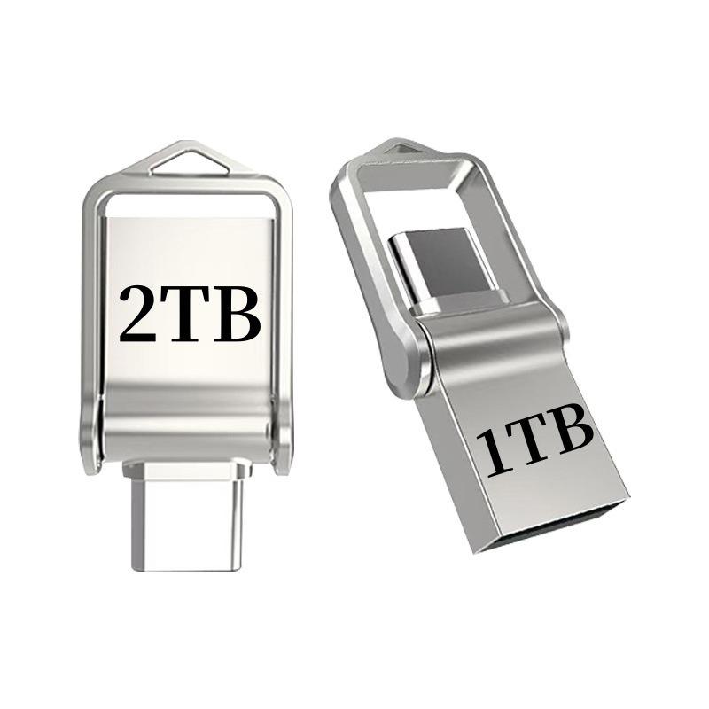 2.0โลหะขนาดเล็กแบบหมุนได้ใหม่2 in 1แบบ USB Type-C/3.0 USB สำหรับโทรศัพท์มือถือแฟลชไดรฟ์ Type C แบบคู่ใช้เป็นของขวัญประเภทธุรกิจทำจากโลหะ1 tb/ 2TB ดิสก์ U