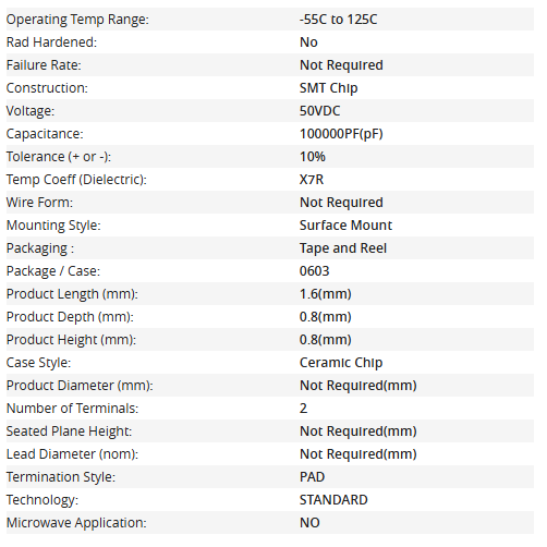 เซ็นเซอร์วัดอุณหภูมิ TAIYAN รุ่นใหม่ วงจรรวมอิเล็กทรอนิกส์ GRM188R71H104KA93D ช่วงอุณหภูมิใช้งาน -55C ถึง 125C แรงดันไฟฟ้า 50VDC 2 ขั้ว