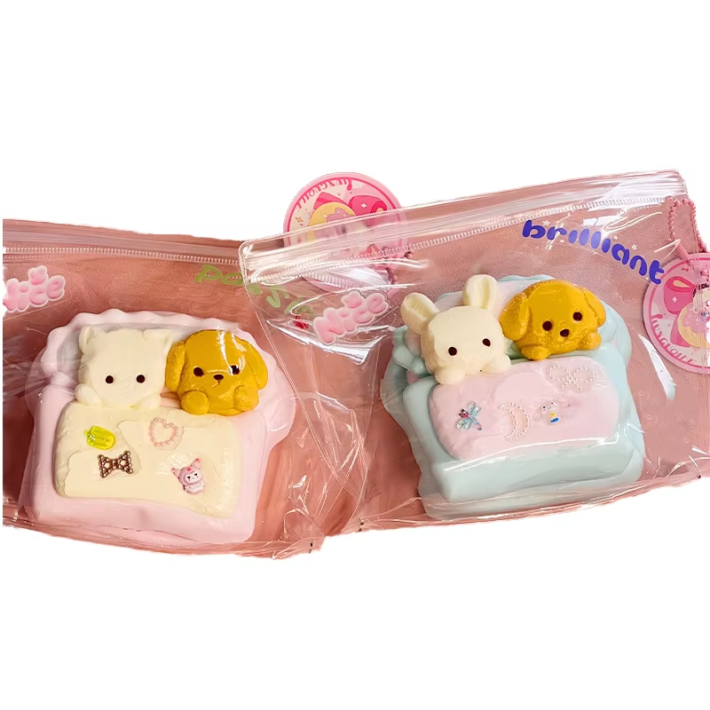 ใหม่ TPR Kawaii 10cm การ์ตูนลูกสุนัขนอนอยู่เตียงของเล่น squishy เกรดอาหารบรรเทาความเครียดของขวัญสำหรับเด็กและผู้ใหญ่