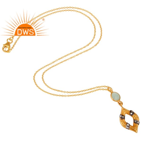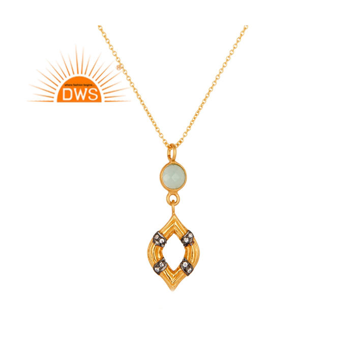 สร้อยคอจี้เงินแท้ชุบทอง 18K ประดับเพชร CZ และพลอยอะควาคาลซีโดนี ดีไซน์ทันสมัย จากผู้ผลิตเครื่องประดับคุณภาพ