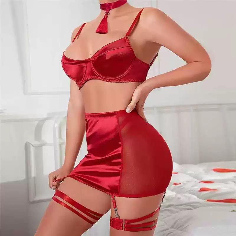 ชุดชั้นในตาข่ายลูกไม้แบบใหม่พร้อมสายรัดด้านหลังมีพู่ห้อย
