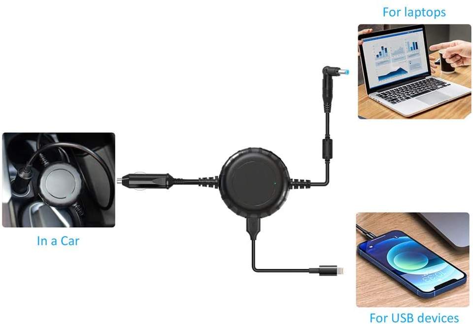 เทคโนโลยีใหม่ 2022 อะแดปเตอร์ชาร์จในรถยนต์แบบยูนิเวอร์แซล 100W ช่องเสียบ USB คู่ สำหรับแล็ปท็อป 18-20V //Asus/