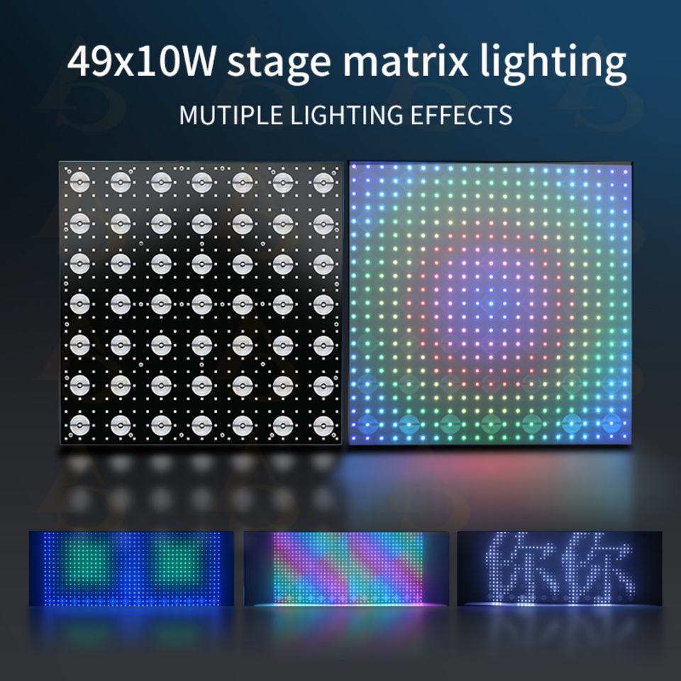 ผลิตภัณฑ์เทคโนโลยีใหม่ 49 ชิ้น ไฟส่องเวทีแบบเมทริกซ์ 10w ไฟ LED แบบเมทริกซ์ Cob Panel ควบคุมด้วย DMX RGB