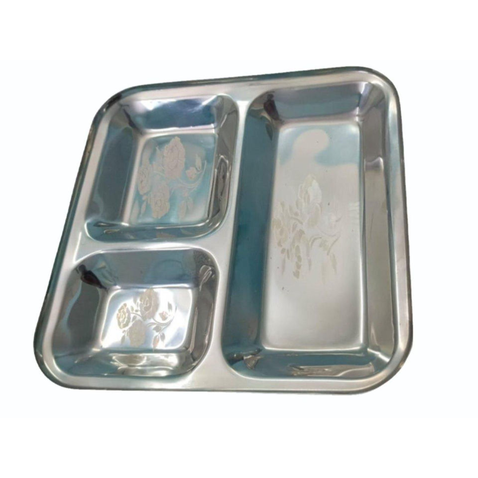 ชุดอาหารค่ำทันสมัยแบบใหม่ ถาดสแตนเลสหนาสีเงิน สำหรับร้านกาแฟ ใส่ผลไม้ เค้ก ของหวาน ถาดอาหาร ถาดบาร์บีคิว แบบตื้น