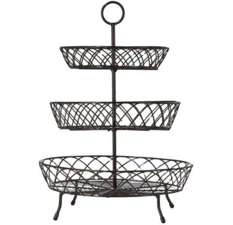 ตะกร้าผลไม้สามชั้นแบบวินเทจ วัสดุโลหะ สำหรับวางบนเคาน์เตอร์ครัว สามารถปรับแต่งขนาดและรูปทรงได้