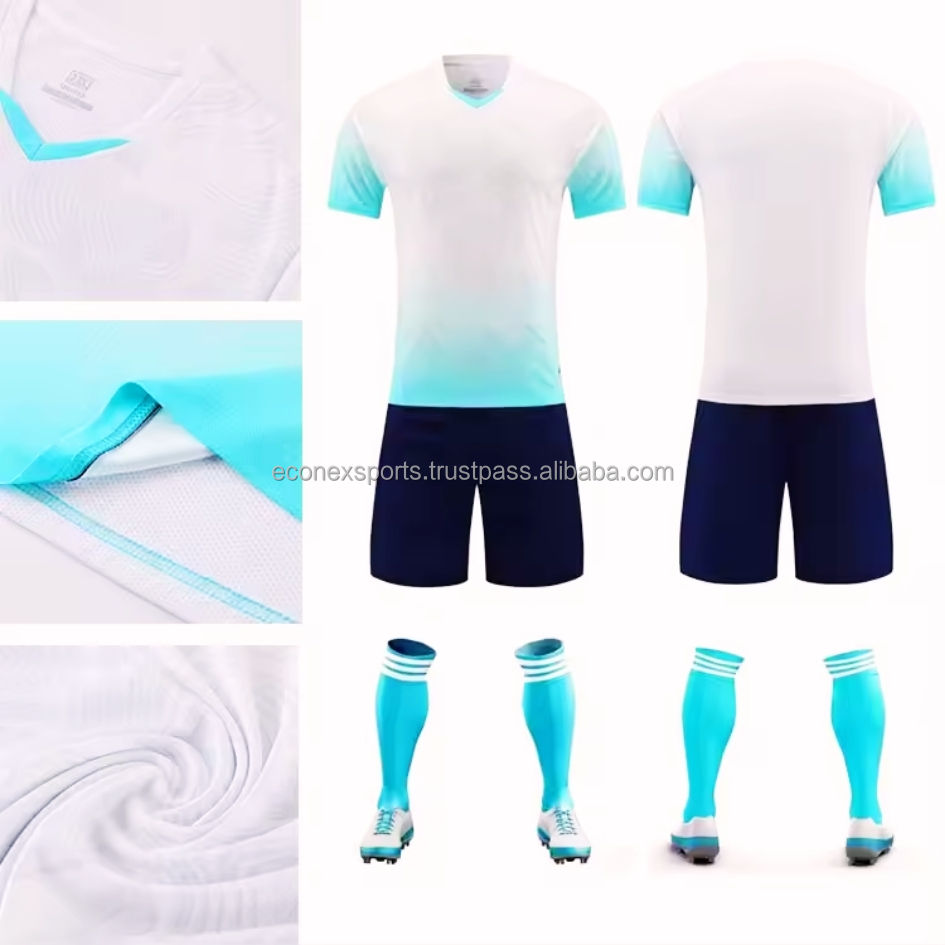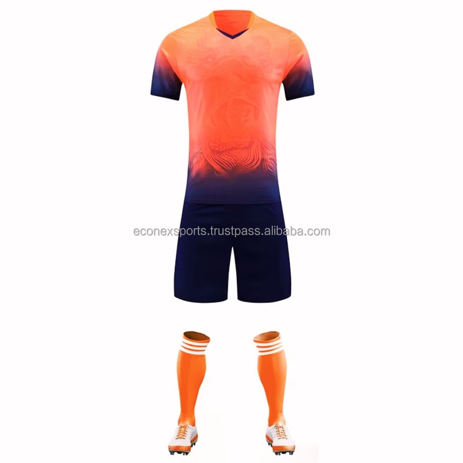 ชุดเสื้อฟุตบอลเสื้อเจอร์ซีย์ผ้าโพลีเอสเตอร์100% สีและโลโก้ออกแบบได้ตามต้องการ