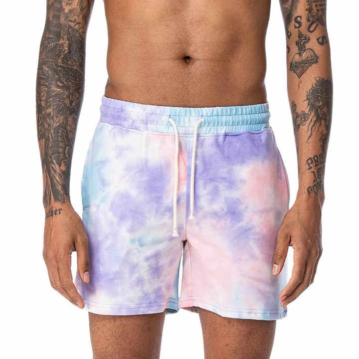กางเกงขาสั้นเล่นยิมสีมัดย้อมสำหรับผู้ชายใหม่เสื้อผ้าพิมพ์ซับลิเมชันแบบกำหนดเองกางเกงขาสั้นลำลองฤดูร้อนสำหรับผู้ชาย