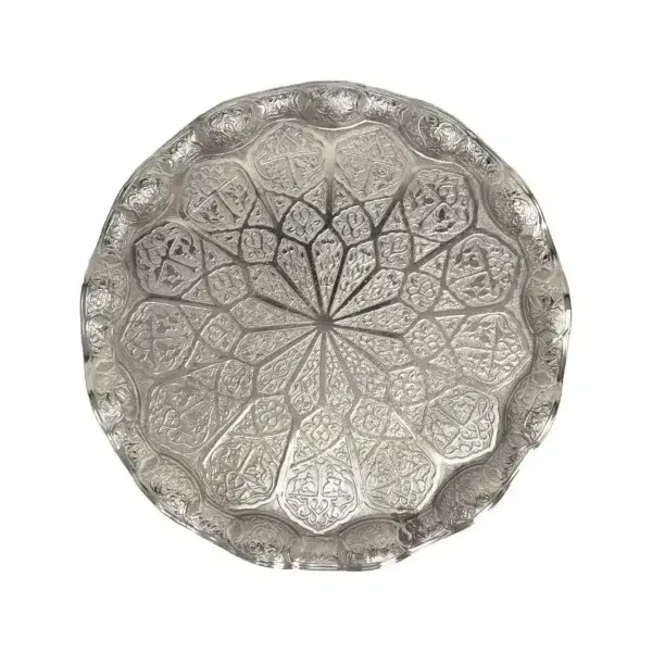 ถาดโลหะสีทองพร้อมดีไซน์แฮนด์เมดใหม่สำหรับตกแต่งสไตล์โมร็อกโก