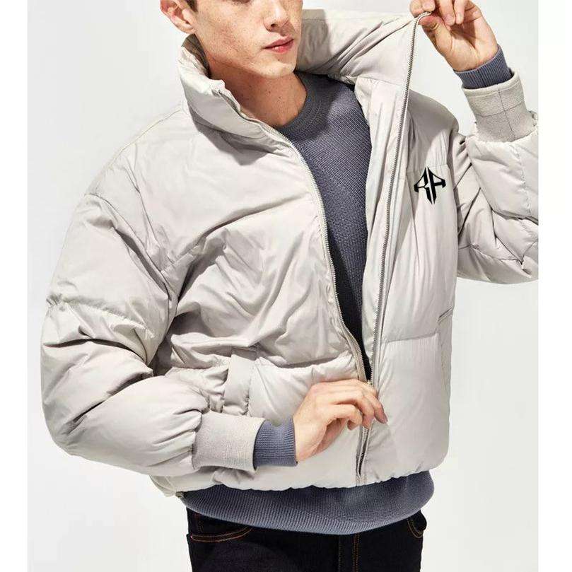เสื้อแจ็กเก็ตขนเป็ดมันวาวสูงสำหรับผู้ชายเสื้อแจ็คเก็ตบุนวมสำหรับฤดูหนาวโลโก้ตามสั่งสำหรับฤดูหนาว