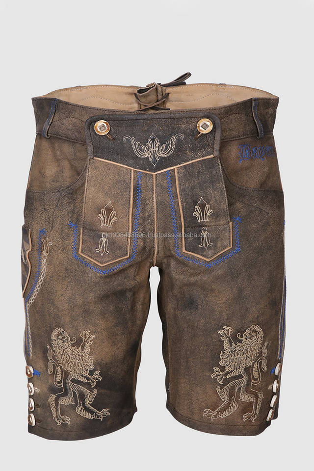 Lederhosen/trachten Bavarian กางเกง lederhosen หนังแท้สั้น2025