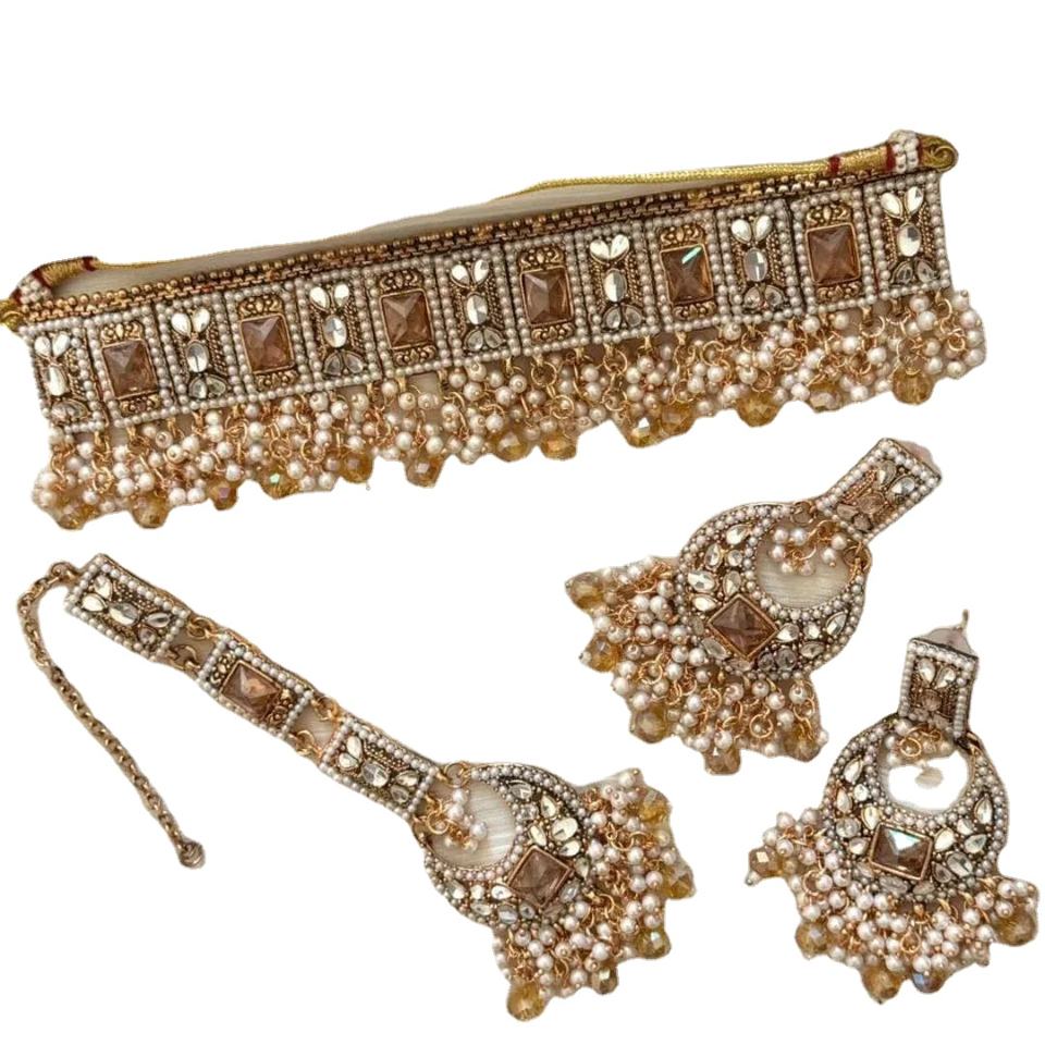 ชุดเครื่องประดับทองชุบ 18K สไตล์อินเดีย-ปากีสถานแบบดั้งเดิมใหม่ สำหรับผู้หญิง สร้อยคอ ต่างหู เครื่องประดับศีรษะ แฟชั่นทันสมัย เหมาะสำหรับเป็นของขวัญงานแต่งงาน