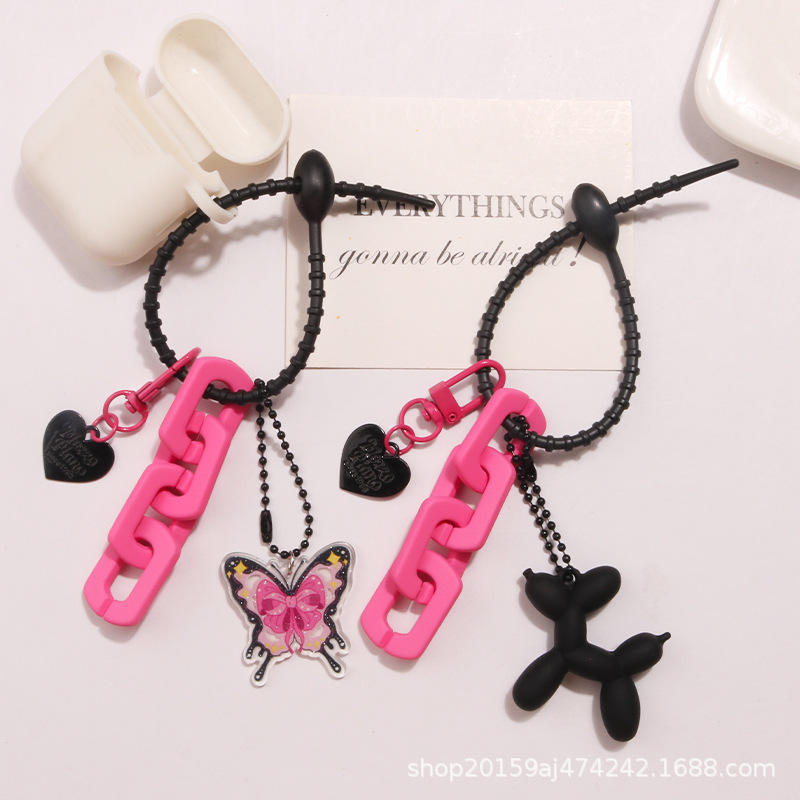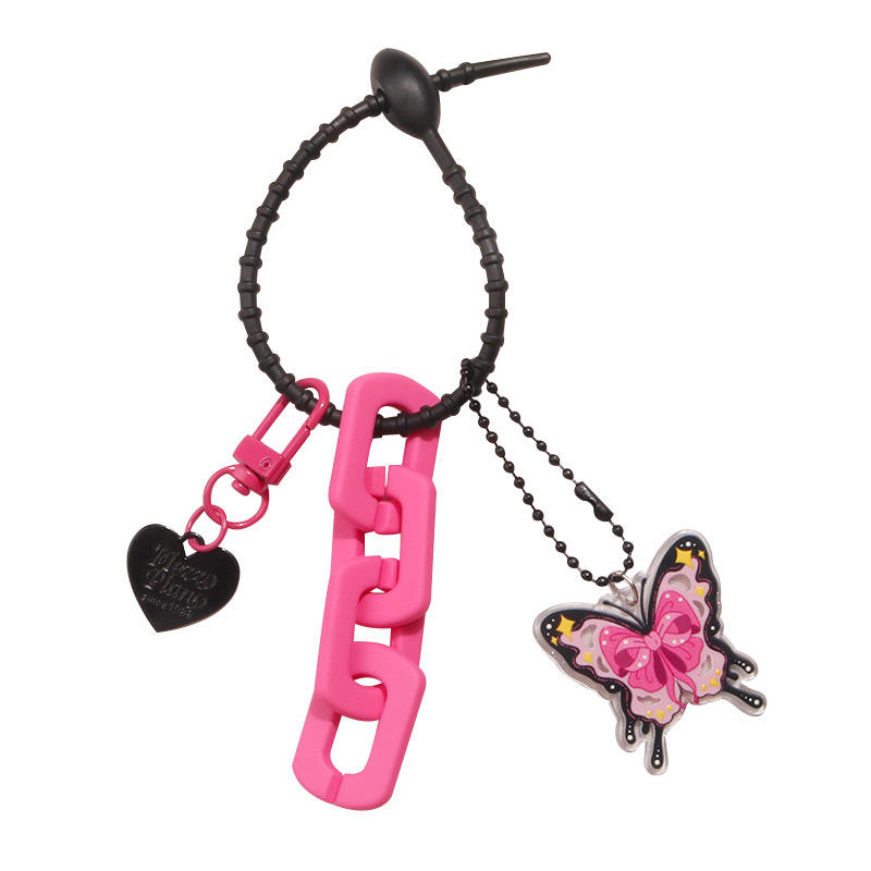 ใหม่จี้อะคริลิคใสผีเสื้อกุหลาบพวงกุญแจสีดำสีแดงหรูหราเรียบง่ายอุปกรณ์เสริมกระเป๋าโซ่เคลือบแล็กเกอร์