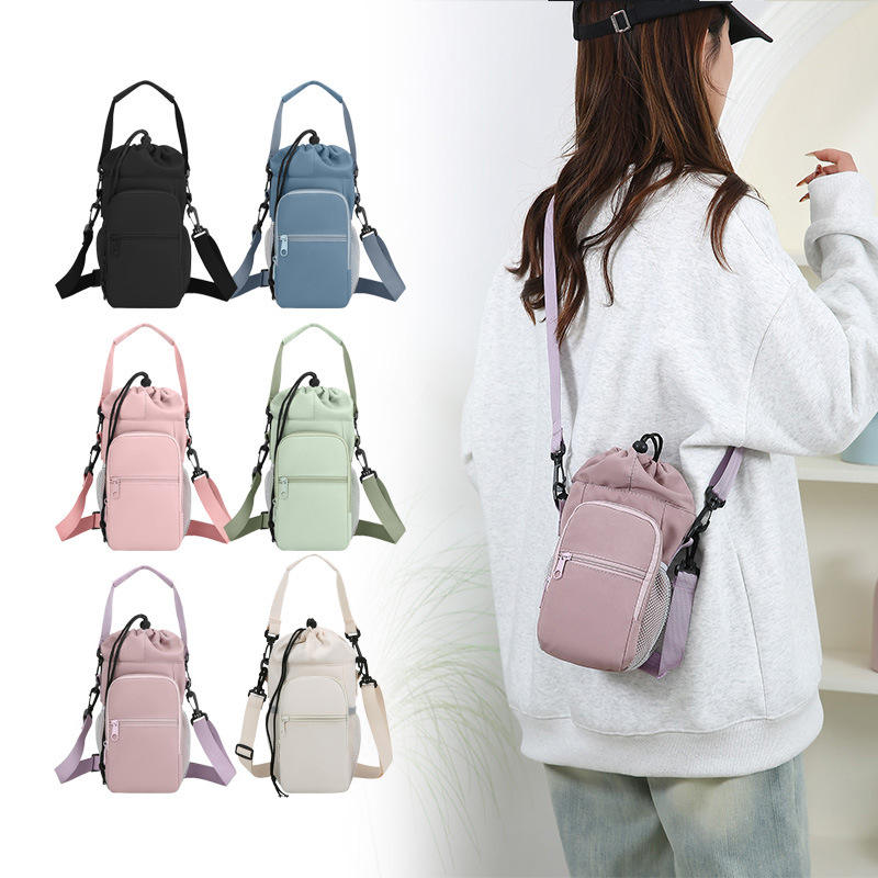 กระเป๋าใส่ขวดน้ำแบบพกพาอเนกประสงค์สำหรับเดินทาง กระเป๋าสะพายข้างแบบสายเดี่ยวสำหรับใส่โทรศัพท์ กระเป๋าหูรูดแบบพกพา