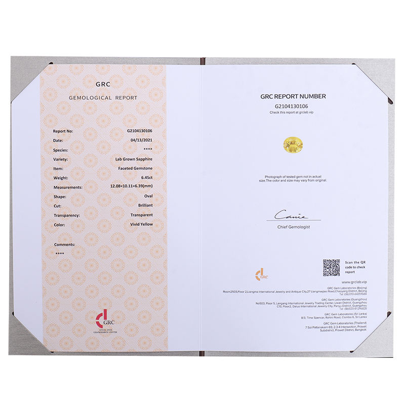 เทรนด์ใหม่ GRC ได้รับการรับรองรูปไข่เหลี่ยมตัดพลอยสีเหลืองราคาต่อกะรัตสำหรับการทำเครื่องประดับ