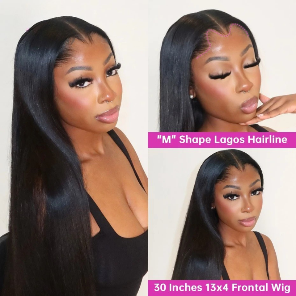 วิกผมแท้แบบใหม่จากลาโกส พร้อมใช้งาน ถอนเส้นผมรอบหน้าผากแล้ว แบบไม่ต้องใช้กาว ขนาด 13x6 13x4 วิกผมลูกไม้ด้านหน้า