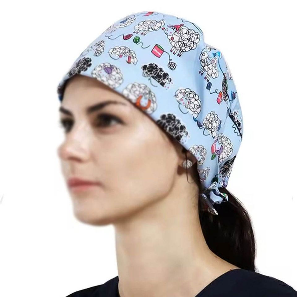 ชุดหมวกผ่าตัดลายพิมพ์ผ้าฝ้ายแบบใหม่ ปรับขนาดได้ เหมาะสำหรับพยาบาล ศัลยแพทย์ แพทย์ และโรงพยาบาล