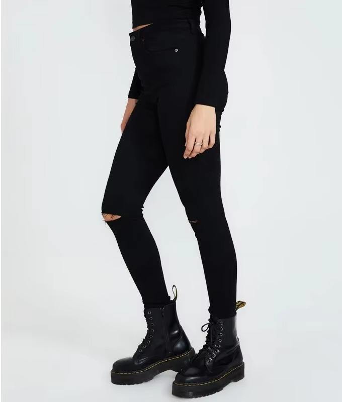 กางเกงยีนส์ขาดทรงสกินนี่เอวสูงแฟชั่นใหม่สำหรับผู้หญิง OEM รุ่นล่าสุด ระบายอากาศได้ดี ตัดเย็บตามสั่ง