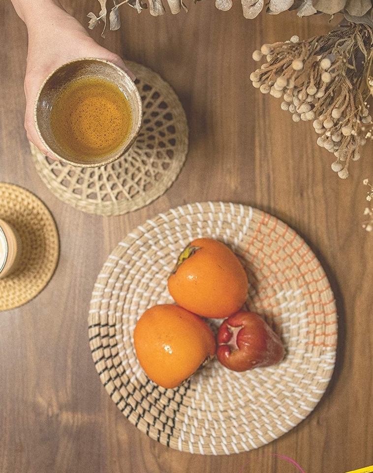 ชุดตกแต่งผนังหวาย6ชิ้น, ตะกร้าแขวนสไตล์โบฮีเมียนพร้อมลวดลายต้นไม้และเชือกเคลื่อนย้ายได้ผลิตในเวียดนาม
