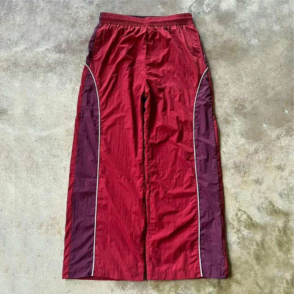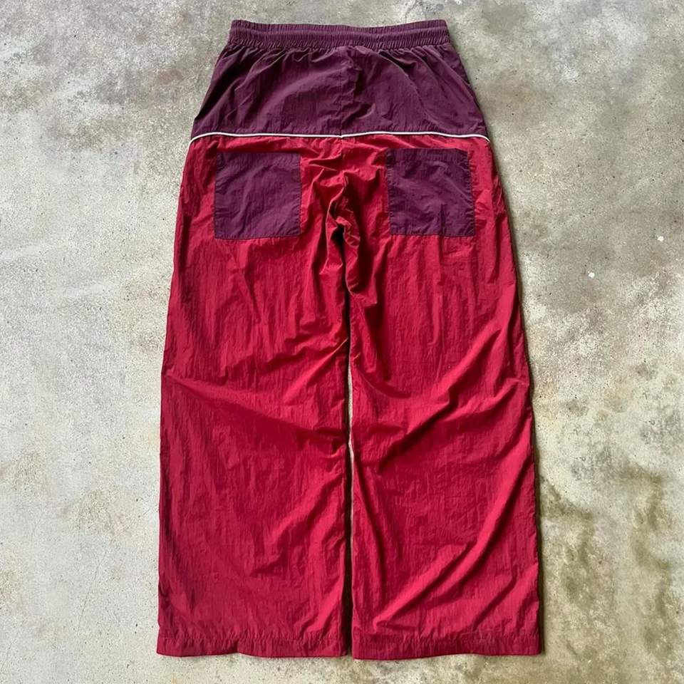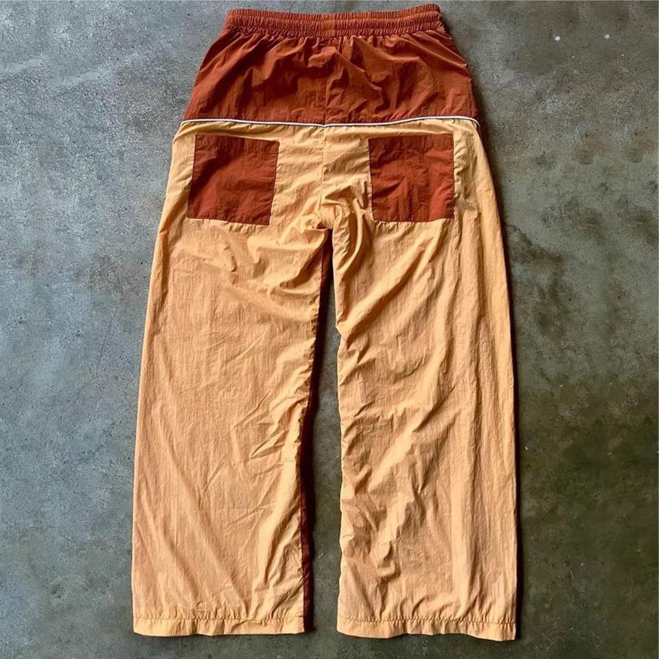 กางเกงวอร์มผ้าไนลอนสำหรับผู้ชายทรงขากว้างดีไซน์บล็อกสีแบบกำหนดเองเทรนด์ใหม่