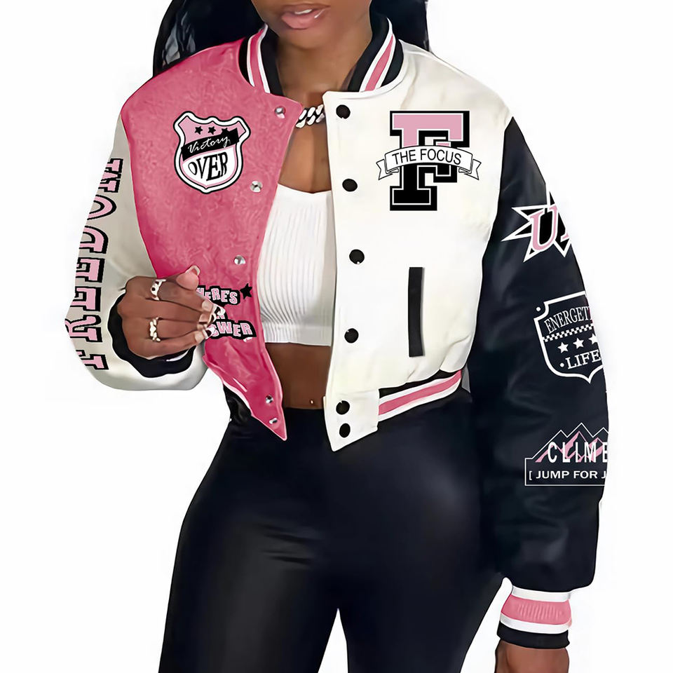Product name:Women Crop varsity Jacket