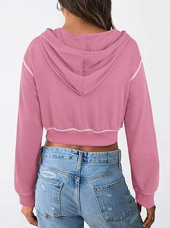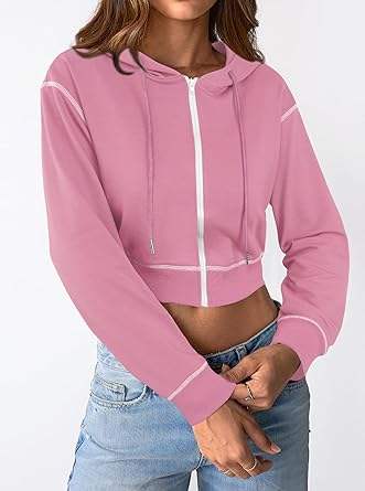 เสื้อมีฮู้ดแบบรูดซิปสำหรับผู้หญิงเสื้อครอปมีฮู้ดผ้าคอตตอนโอเวอร์ไซส์เซ็กซี่2026ครอปโยคะสีชมพูแบบกำหนดเองได้