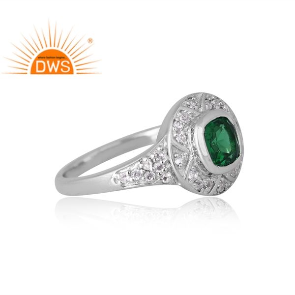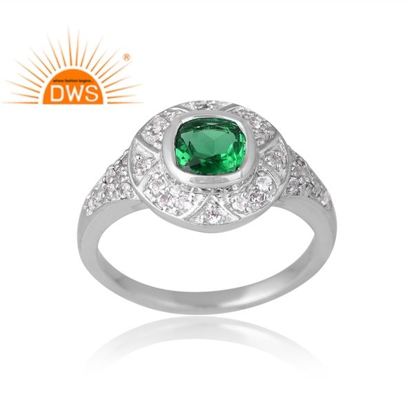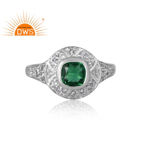 แหวนพลอยสีเขียวชุบแพลเลเดียม925ดีไซน์ใหม่ได้รับการออกแบบโดยผู้ผลิตเครื่องประดับแบบกำหนดเอง