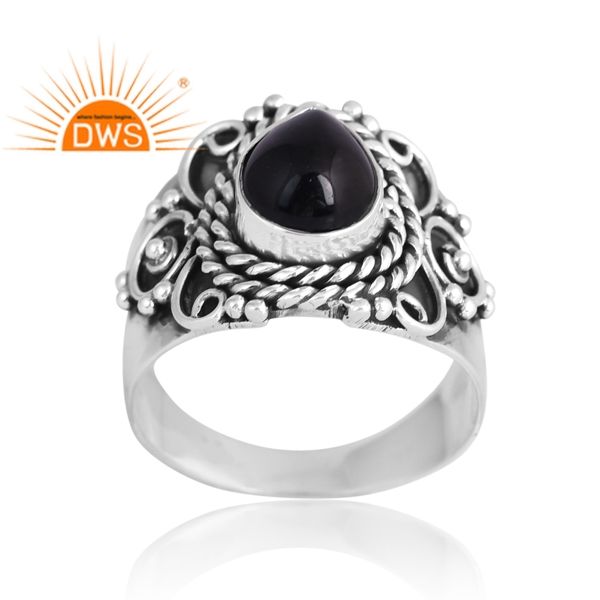 แหวนพลอยโอนิกซ์สีดำธรรมชาติเงินสเตอร์ลิงเครื่องประดับแบบสั่งทำของขวัญสำหรับผู้หญิงสำหรับผู้หญิง