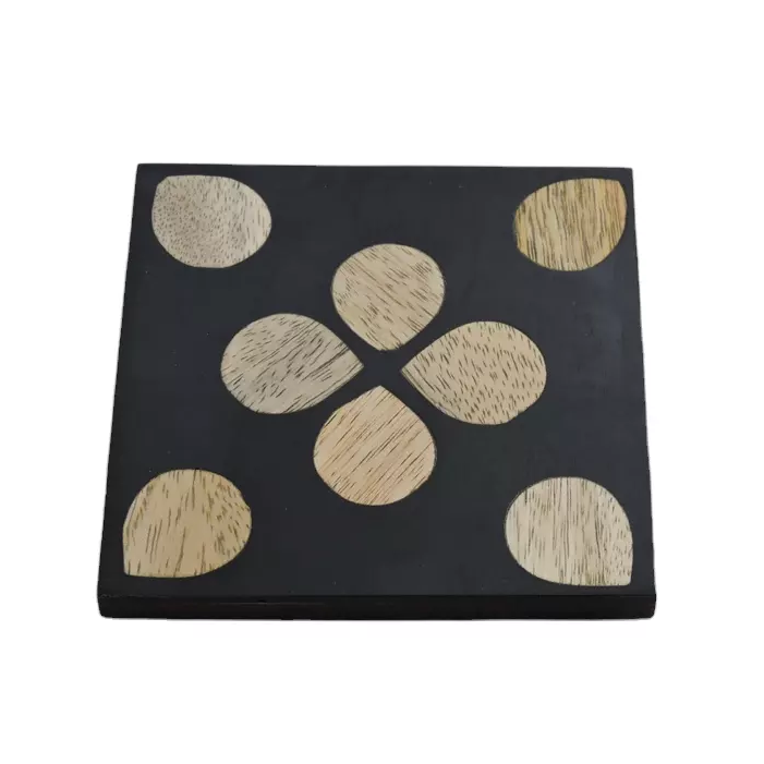 จานรองแก้วไม้ทำด้วยมือพร้อมแผ่นรองแก้วและแผ่นรองแก้วดีไซน์อินเดีย