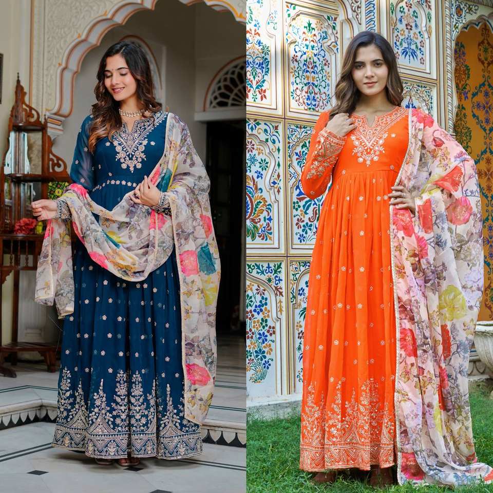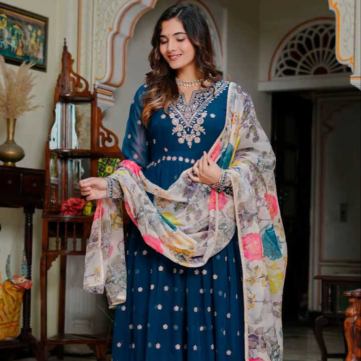 ชุดอานาร์กาลี คุรตะ ปักลายหนัก ดีไซน์ใหม่มาแรง พร้อมกางเกงและผ้าคลุมไหล่