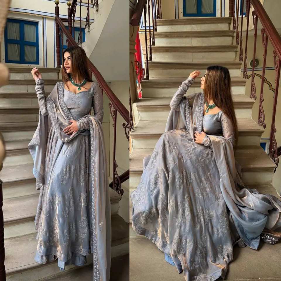 ชุดอานาร์กาลี คุรตะ ปักลายหนัก ดีไซน์ใหม่มาแรง พร้อมกางเกงและผ้าคลุมไหล่