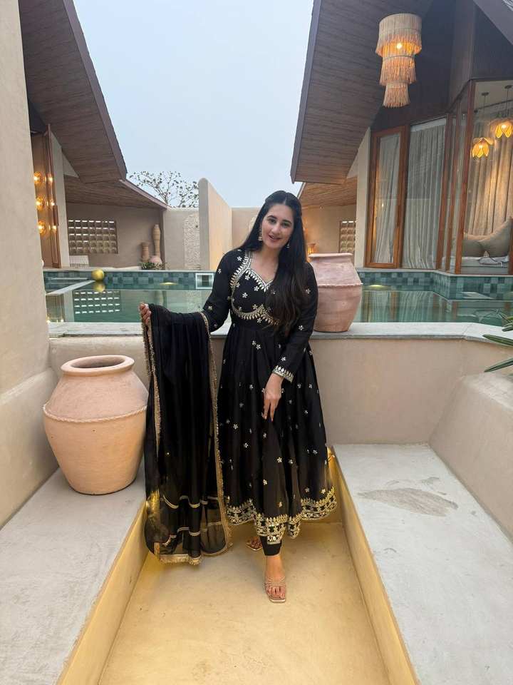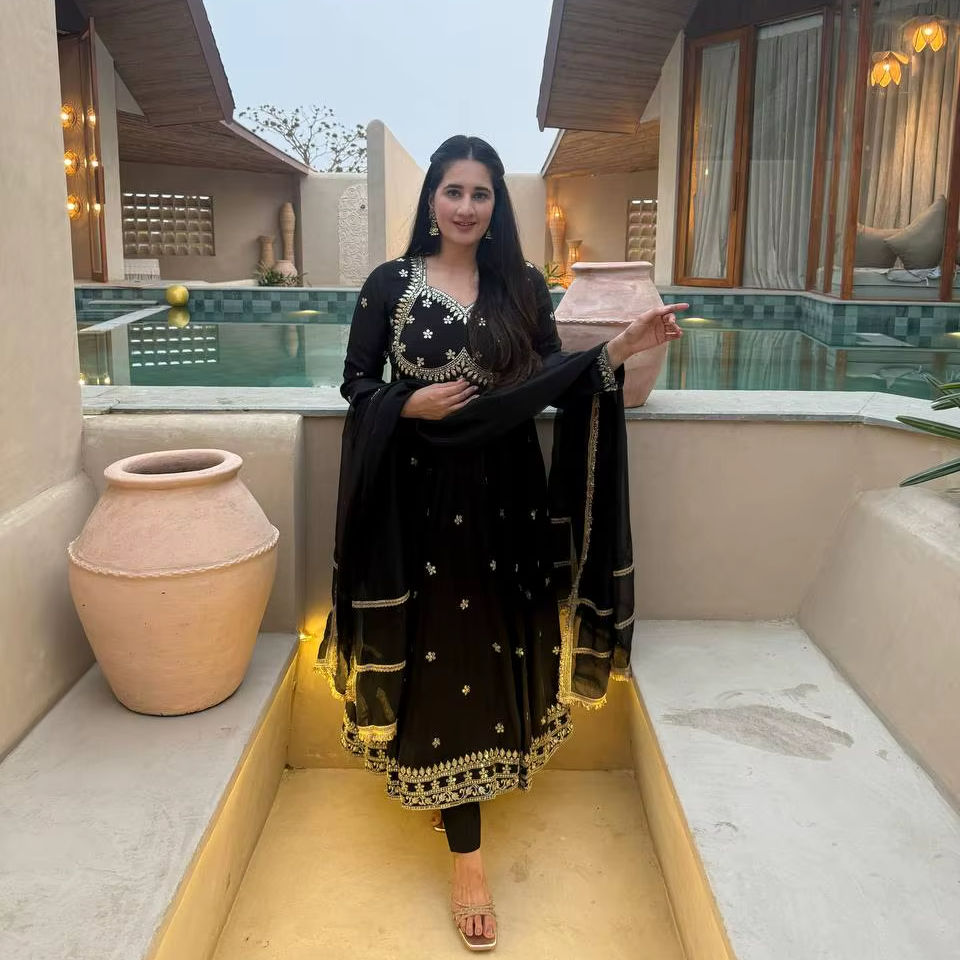 ชุดเดรสผ้าไหมฟานดี้ปักเลื่อมงานดีไซน์เนอร์สุดฮิต พร้อมกางเกง ผ้าคลุมไหล่ และเสื้อโคติ